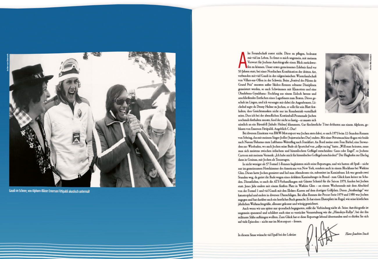 Jochen von Osterroths Erlebnisse im Motorsport – die hat er seit 1962 auf dem „Tacho – mit allen Facetten bis hin zum Formel-1-Teammanager, schildert dieses Buch mit einem Vorwort seines alten Freundes Hans-Joachim „Strietzel“ Stuck. Gestaltung des Buches: Rainer Rossbach und verlegt von Jörg-Thomas Födisch in der Prova Edition.