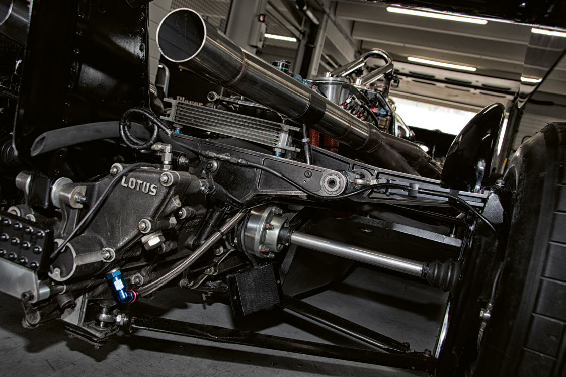 1981 startete Lotus mit Nigel Mansell noch mal mit dem Lotus 81 in die Saison. Elio de Angelis sollte mit der neuen Wunderwaffe, dem Lotus 88, antreten, der wurde aber umgehend als illegal eingestuft und so startete auch de Angelis im Rennen mit dem Lotus 81. Mit dem Lotus 88, dem berühmten „Doppelchassis“ wollte Colin Chapman einen weiteren Geniestreich in die Formel 1 bringen. (siehe Curbs #46) Doch bei beiden Auftritten wurden die 88er nach dem Training verboten. Beim zweiten Anlauf in Silverstone wurde erneut nach dem Training der Start verweigert. Nach dem endgültigen Verbot des Lotus 88 wurden in einer Nacht- und Nebel- Aktion beide 88er zum Modell Lotus 87 umgebaut. Der von uns gefahrene Lotus 87/4 war ursprünglich in Silverstone Elio de Angelis Lotus 88B /4. Er hat also zwei Chassis-Nummern und zwei „Leben“…
