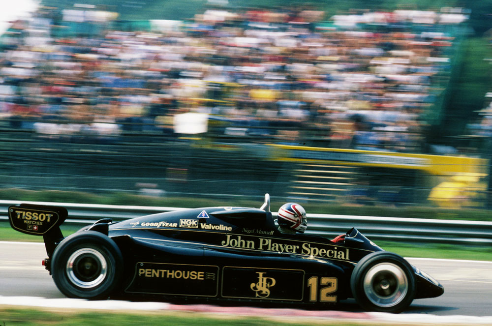 Mansell beeindruckte beim Lotus-Test, erhielt einen Testfahrer-Vertrag und griff in der zweiten Saisonhälfte 1980 bei den Grands Prix Österreich, Niederlande und Italien als dritter Lotus-F1-Pilot auch noch ins Renngeschehen ein. Nachdem Lotus dann in der Royal Albert Hall in London Anfang 1981 Nigel Mansell als zweiten Fahrer neben Elio de Angelis präsentierte, entspannte sich auch die tapfere Rosanne – im März 1981 gab sie ihren längerjährigen Außendienst-Job für „British Gas“ auf. Der feste Zusammenhalt des Ehepaars hatte auch den Formel-1-Einstieg geschafft! Wie etliche andere Teams befand sich auch Lotus Anfang der 80er Jahre im Umbruch des Wechsels vom Saugmotor, Ford Cosworth, auf Turbo-Aggregat, hier Renault ab 1983. Lotus tat sich mit unzuverlässigeren Autos schwe-rer damit. Als Nigel Mansell gleich Anfang 1981 Dritter des belgischen Grand Prix in Zolder und überraschender Dritter der Start-aufstellung in Monaco war, wussten aber alle Formel-1-Fans quasi über Nacht, wer er war. Letztlich gelangen ihm bis Ende 1984 im Lotus fünf dritte und vier vierte Plätze, aber nach dem Tod Colin Chapmans am 16. Dezember 1982 hatte er seinen Mentor und Fürsprecher im Team verloren. Der neue Teamchef Peter Warr verpfl ichtete statt sei-ner ab 1985 Ayrton Senna – und damit war auch die Rivalität Mansell/Senna geboren.