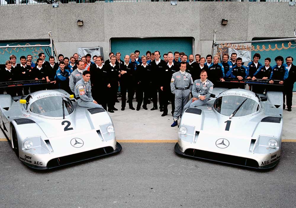 At the 1989 season opener in Suzuka, the motorsport world was astonished. Firstly, for the first time since 1955, a Mercedes works team was on the grid and secondly – and this was the surprise par excellence – the two Sauber-Mercedes C9s were painted silver. Almost without a sponsor, they were reminiscent of glorious victories from the 1930s and 1950s. The Mercedes-Benz Board of Management thus made a commitment to itself. After all, a Silver Arrow was there to win.