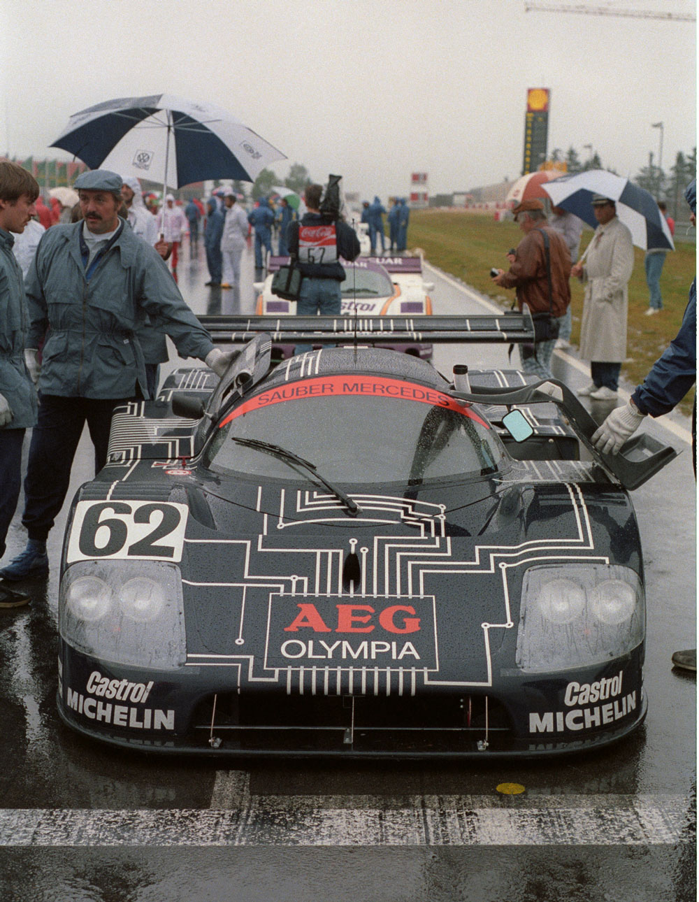 Nun erwuchs dem Jaguar von Tom Walkinshaw ein neuer Gegner: Sauber-Mercedes. Von den deutschen Medien wurde das Engagement mit großem Interesse verfolgt, denn Mercedes hatte sich jahrzehntelang vom Rennsport ferngehalten. Peter Sauber und Teammanager Max Welti be-scherten dem Team eine lange Siegesserie. Mike Thackwell und Henri Pescarolo holten schon 1986 bei dem 1000-km Rennen am Nürburgring für das Team den ersten Sieg. 1989 geschah das, was sich viele Motorsportfans lange erhofft hatten: Mercedes kehrte mit dem Team von Peter Sauber offiziell in den Motorsport zurück und ließ sofort die „Silberpfeil-Tradition“ aufleben. Die Sauber-Mercedes C9 fuhren fortan im silbernen Gewand. Jean-Louis Schlesser gewann die Fahrerwertung, Sauber die Team-wertung. Der größte Erfolg war 1989 der Doppelerfolg in Le Mans. Manuel Reuter, Jochen Mass und Stanley Dickens fuhren als Erste über die Ziellinie, gefolgt vom zweiten Silberpfeil mit Mauro Baldi, Kenny Acheson und Gianfranco Brancatelli am Steuer. Die Siegesserie in der Weltmeisterschaft wiederholte sich 1990. Das neue Reglement schrieb ab 1991 für die Fahrzeuge der Klas-se C1-Saugmotoren vor. Obwohl Peugeot, Toyota, Jaguar und Mercedes in der Weltmeisterschaft starteten, war der Niedergang aber nicht mehr aufzuhalten. 1992 wurden von den geplanten zehn Rennen nur noch sechs ausgetragen. Am 18. Oktober 1992 wurde in Magny-Cours das letzte Gruppe- C-Rennen in der Sportwagen-Weltmeisterschaft abgewunken.