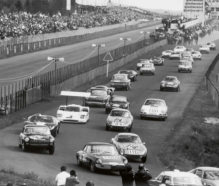 Mehr noch als die anderen «kleineren» Langstreckenrennen, an denen jeweils wenigstens einer der Großen dabei war, gerät das 1000-km-Rennen zwischen die Mühlsteine der beiden Hauptakteure, die ihre Kräfte für Le Mans sparen wollen. Der Nürburgring stört die Le-Mans-Vorbereitungen, denn er fi ndet ja nur gerade vierzehn Tage vor den 24 Stunden statt, und er ist nicht wichtig genug. Er bietet zu wenig Resonanz, das heißt: mit dem Nürburgring-Sieg kann man zu wenig anfangen, er bie-tet nicht das Prestige eines Le-Mans- oder Daytona-Erfolgs.“